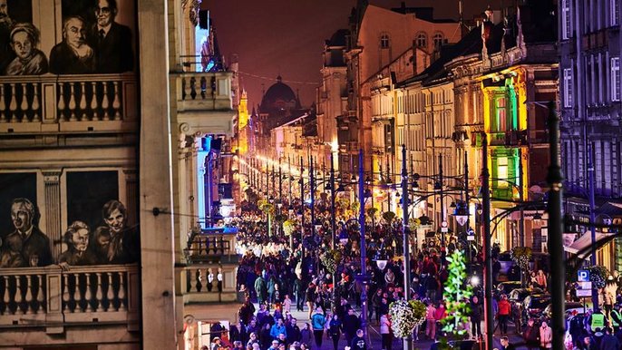 Pokazy 7. edycji Festiwalu Światła przyciągnęły do śródmieścia Łodzi nawet 650 tys. widzów. Podczas weekendu zabrakło w Łodzi miejsc noclegowych. więcej