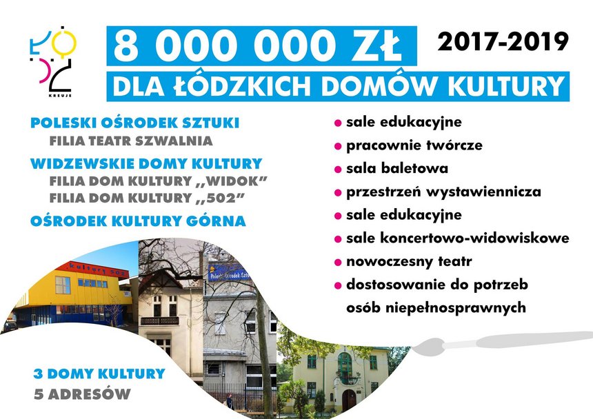 Prace mają rozpocząć się w tym roku, a zakończyć najpóźniej w 2019 roku. Projekt obejmuje m.in. modernizację budynków, zakup nowego multimedialnego sprzętu, rozwój przestrzeni wystawienniczych, rozbudowę sceny teatralnej oraz dostosowanie przestrzeni do potrzeb osób niepełnosprawnych. Od 2019 roku będzie można korzystać z nowych pracowni twórczych, przestrzeni edukacyjnych, sali baletowej oraz profesjonalnie wyposażonego teatru. Ośrodek Kultury ,"Górna", Poleski Ośrodek Sztuki oraz Dom Kultury ,"Widok" to placówki wpisane do Rejestru Zabytków.