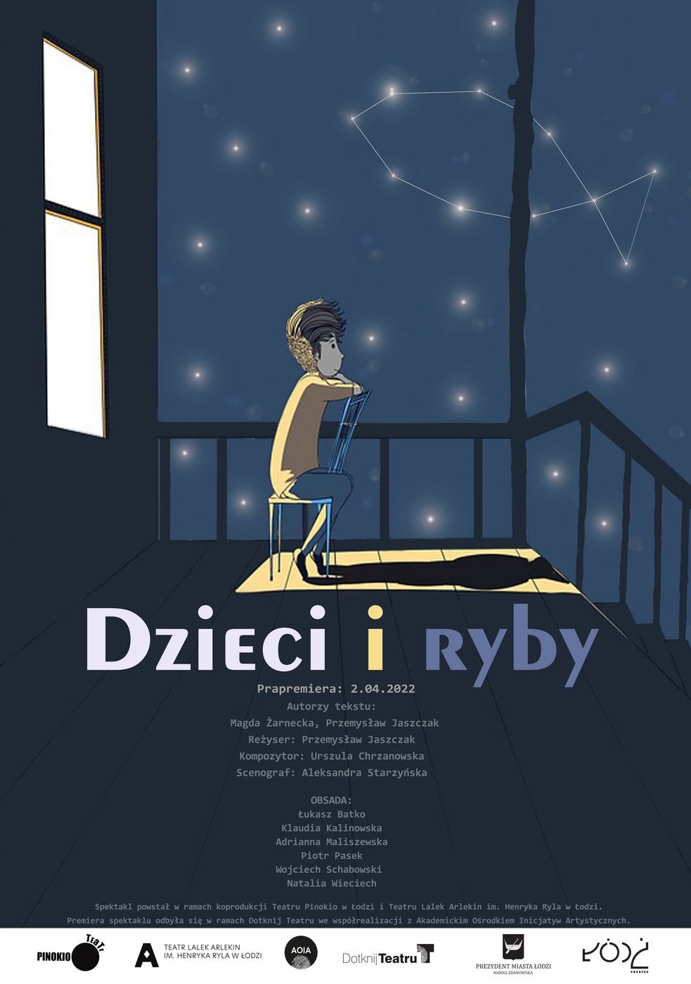 Przedstawienie „Dzieci i ryby” ma formę kolażową, a historie są opowiedziane językiem teatru lalek i formy. Oglądać tu możemy m.in. lalki stolikowe czy ożywianie i animację przedmiotów i przestrzeni, z zachowaniem maksimum iluzji czarnego teatru.