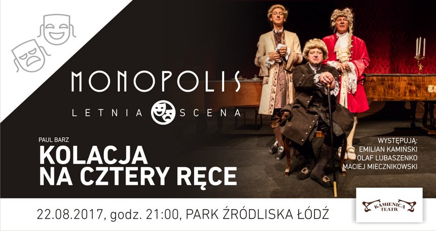Letnia Scena to projekt tworzony wspólnie z dwoma warszawskimi teatrami: Polskim i Kamienica. Z uwagi na trwające w Monopolis prace konserwatorskie, plenerowa scena gości w niezwykłych przestrzeniach zabytkowego parku Źródliska. Po dwóch spektaklach Teatru Polskiego im. Arnolda Szyfmana nadszedł czas na Teatr Kamienica, który w sierpniu i wrześniu wystawi w Łodzi dwa przedstawienia. Na początek goście Letniej Sceny Monopolis zobaczą „Kolację na cztery ręce”.