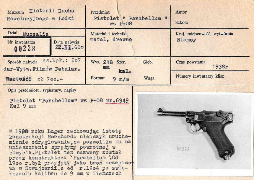 Złodzieje uszkodzili gabloty w muzeum przy ul. Gdańskiej 13 i ukradli znajdujące się w nich 3 eksponaty – zabytkowe pistolety. Policja jest w trakcie ustalania okoliczności zdarzenia i sprawców. Dochodzenie prowadzi IV komisariat Policji w Łodzi, przy ul. M. Kopernika 29/31, tel.: 42 665 23 00