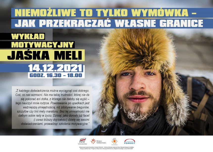 Wykład motywacyjny Jaśka Meli „NIEMOŻLIWE TO TYLKO WYMÓWKA – JAK PRZEKRACZAĆ WŁASNE GRANICE”,