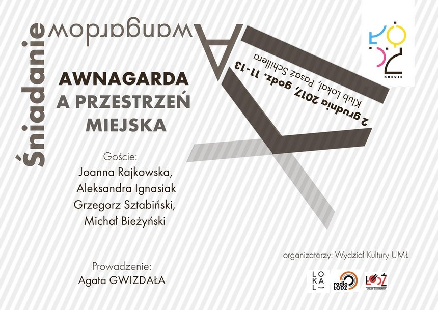 Na stołach jak zawsze pojawi się pyszne jedzenie, ale w rozmowie tym razem królować będzie architektura, street art i przestrzeń miejska, nie tylko w ujęciu awangardowym. W dyskusji udział wezmą: Joanna Rajkowska (artystka, autorka instalacji i projektów artystycznych, m.in. Pasażu Róży oraz Pozdrowień z Alej Jerozolimskich, w tym palmy na rondzie Charles’a de Gaulle’a w Warszawie), Aleksandra Ignasiak (ASP), Marek Janiak (architekt Miasta i współtwórca Grupy Łódź Kaliska),prof. Grzegorz Sztabiński (Katedra Historii Sztuki UŁ) oraz Michał Bieżyński (dyrektor artystyczny projektu UNIQA Art Łódź z Łódzkiego Centrum Wydarzeń). Spotkanie moderować będzie red. Agata Gwizdała z Radia Łódź, które zwyczajowo transmituje na antenie rozmowę.