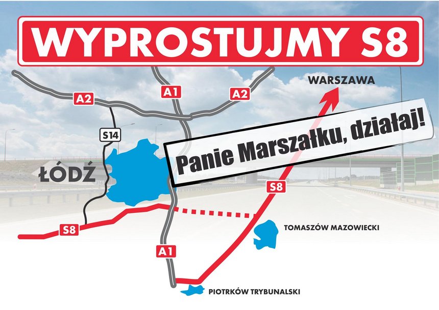 Mateusz Walasek i Tomasz Kacprzak przygotowali w tej sprawie projekt uchwały stanowisko-apel, w którym wyliczają szereg powodów, dla których powinien powstać brakujący odcinek drogi S8. Argumentują, że dzięki niemu Łódź oraz gminy z aglomeracji łódzkiej uzyskają alternatywny dojazd drogą ekspresową do Warszawy. Ponadto: