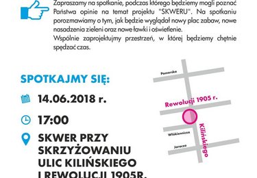 Mieszkańcy mieli możliwość przedstawienia swoich opinii dotyczących powstającej na skwerze przestrzeni rekreacyjnej. Na spotkaniu rozmawialiśmy o tym jak będzie wygadał nowy układ chodników, o przestrzeniach zielonych i nowych nasadzeniach, o lokalizacji i wyposażeniu placu zabaw oraz umiejscowieniu ławek i oświetlenia.