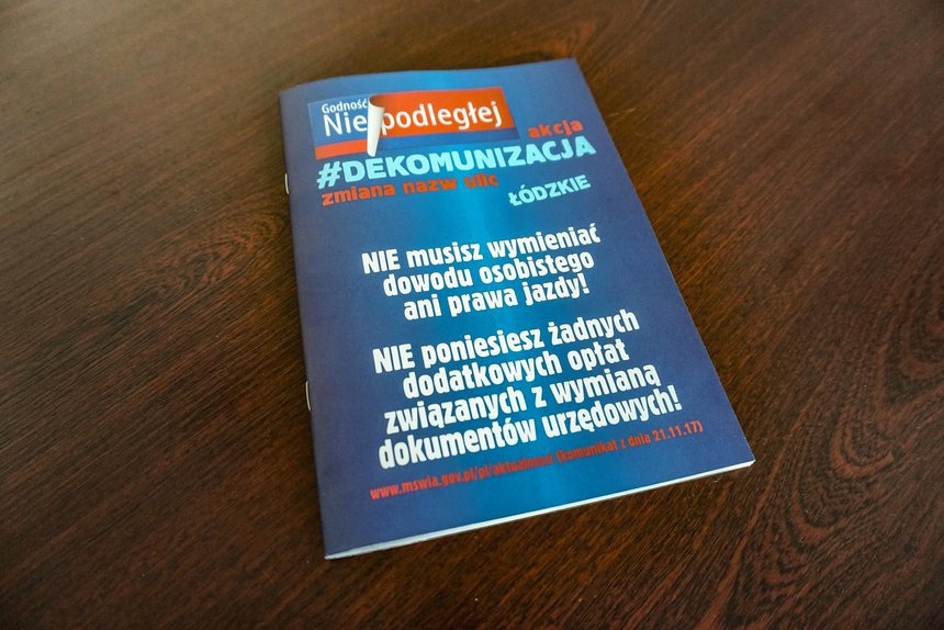 - Broszura Polskiej Fundacji Narodowej, skierowana do mieszkańców Łodzi i województwa łódzkiego mieszkających przy ulicach, których nazwy zostały zdekomunizowane na mocy ustawy o zakazie propagowania komunizmu lub innego ustroju totalitarnego, to regionalna odsłona akcji edukacyjnej pod hasłem „Godność Niepodległej”. Materiał zawiera biogramy nowych patronów przestrzeni publicznych i informacje dotyczące między innymi braku potrzeby wymiany dowodów osobistych i innych dokumentów urzędowych. Kampania informacyjna PFN rozpoczęła się wiosną tego roku od Warszawy. Cieszę się, że objęła swoim zasięgiem również nasz region, bo wielu mieszkańców jest zdezorientowanych publicznymi wypowiedziami polityków totalnej opozycji, którzy wykazują wielkie przywiązanie do reliktów PRL – powiedział Łukasz Magin.