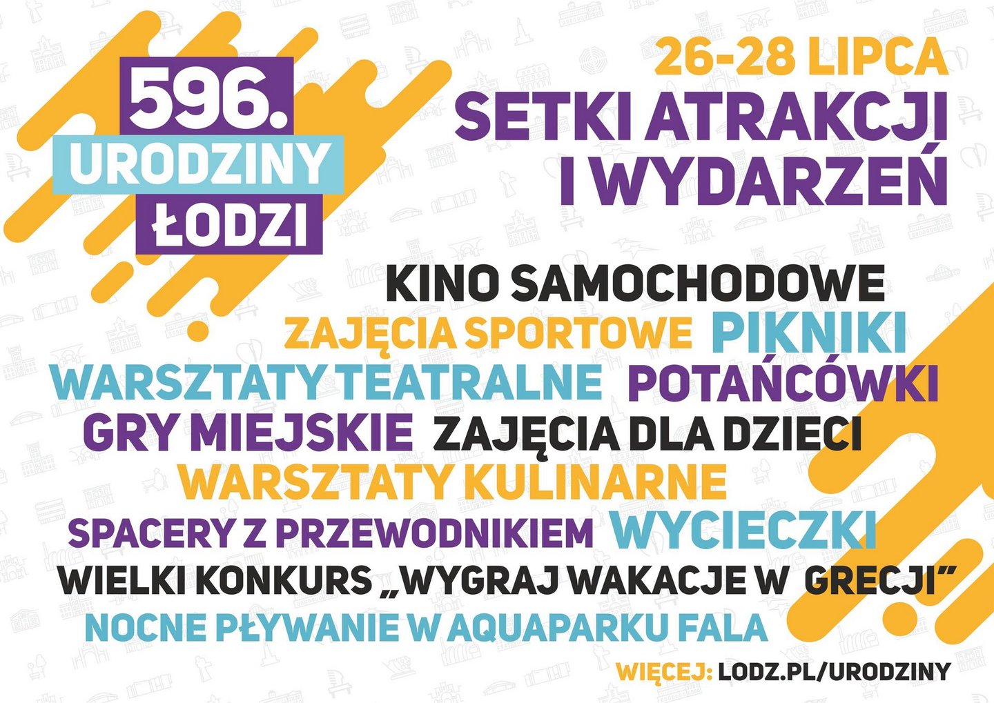 Wielkimi krokami zbliżają się 596. Urodziny Łodzi. Z tej okazji na mieszkańców i turystów czekać będą koncerty, wycieczki, spektakle, potańcówki, zajęcia sportowe, zniżki na bilety wstępu, oraz tygodniowy pobyt w Grecji.