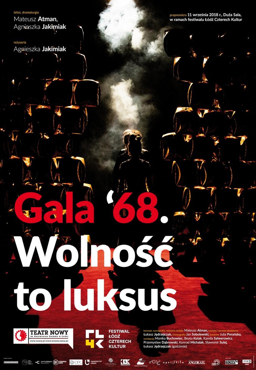Spektakl „Gala ’68. Wolność to luksus” w reżyserii Agnieszki Jakimiak jest koprodukcją z Festiwalem Łódź Czterech Kultur, podczas którego miał swoją premierę w dniu 11 września br. w Teatrze Nowym.