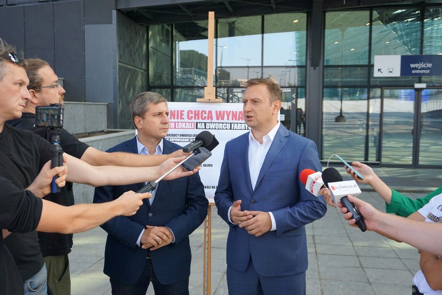 - Raz dzwoniliśmy, drugi, trzeci, czwarty… głucho. Zarządca, który jest takim lokalnym Misiewiczem, bo został wstawiony przez swojego brata wojewodę, nic kompletnie nie wie. W centrali PKP również niczego się nie dowiedzieliśmy. Chcemy obnażyć bezsilność rządów PiS, bo tu kilka dni temu stała cała wierchuszka Prawa i Sprawiedliwości. Mówili, co zrobią w naszym mieście jak wygrają wybory. Tymczasem nie potrafią zarządzać dworcem, który jest imponujący i będzie dalej rozbudowywany. Dzisiaj apelujemy, żeby ci pisowscy Misiewicze wzięli się do roboty i zaczęli zarabiać na tych powierzchniach, które mogłyby na siebie pracować. Nie może być tak, że lokalny przedsiębiorca, który dzwoni pod wskazane numery telefonów, jest odsyłany od Pawła do Gawła – uważa Tomasz Trela.