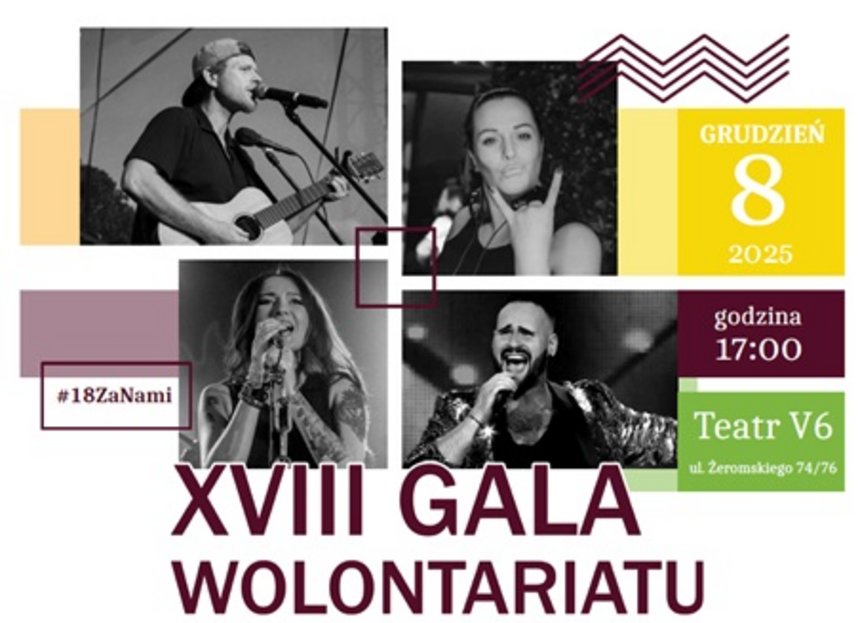 Tegoroczna edycja Gali odbędzie się 08 grudnia 2025 r. (poniedziałek) o godz. 17.00 w Teatrze V6 w Łodzi (ul. Żeromskiego 74/76). Hasło przewodnie –#18ZaNami – symbolicznie podkreśla pełnoletniość wydarzenia, które przez lata stało się jednym z najważniejszych punktów na mapie łódzkiego wolontariatu.
