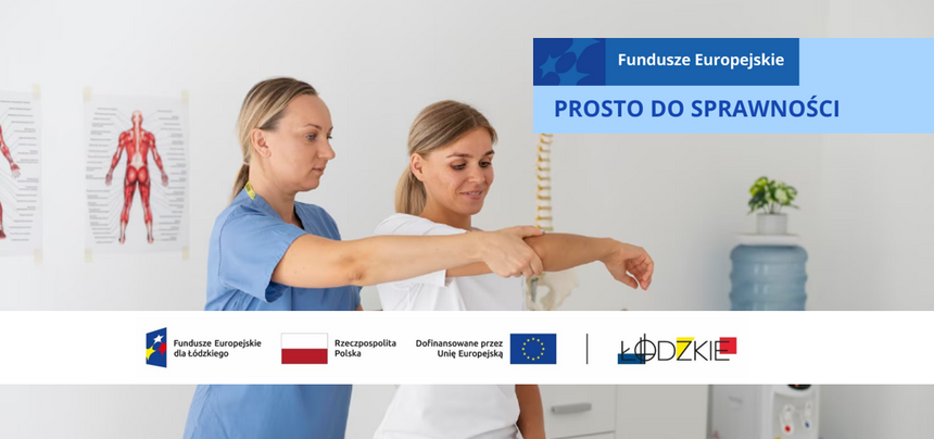 Projekt "Prosto do sprawności" jest współfinansowany przez Unię Europejską w ramach Funduszy Europejskich dla Łódzkiego 2021 - 2027 współfinansowanych z Europejskiego Funduszu Społecznego Plus, Działanie 8.04. „Zdrowy pracownik. Rehabilitacja narządu ruchu”.