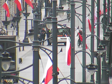 W dniu 9 maja br. około godziny 6:25 operator monitoringu miejskiego zauważył na ul. Piotrkowskiej dwóch mężczyzn, jeden z nich zdjął flagę Polski zawieszoną na uchwycie przymocowanym do latarni ulicznej.