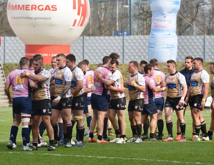 Master Pharm Budowlani - KS Budowlani Lublin 49:7 (18:7). Punkty dla Master Pharm Budowlani: Paul Walters 19, Berho Botha 15, Vitalii Kramarenko 5, Wilhelmus Staphorst 5, Maciej Orłowski 5).