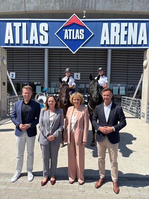 przedstawiciele władz miasta oraz organizator cavaliady przed wejsciem na atlas arene