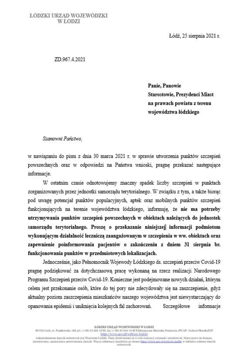 Nadchodzi IV fala pandemii, a wojewoda zamyka punkty szczepień powszechnych