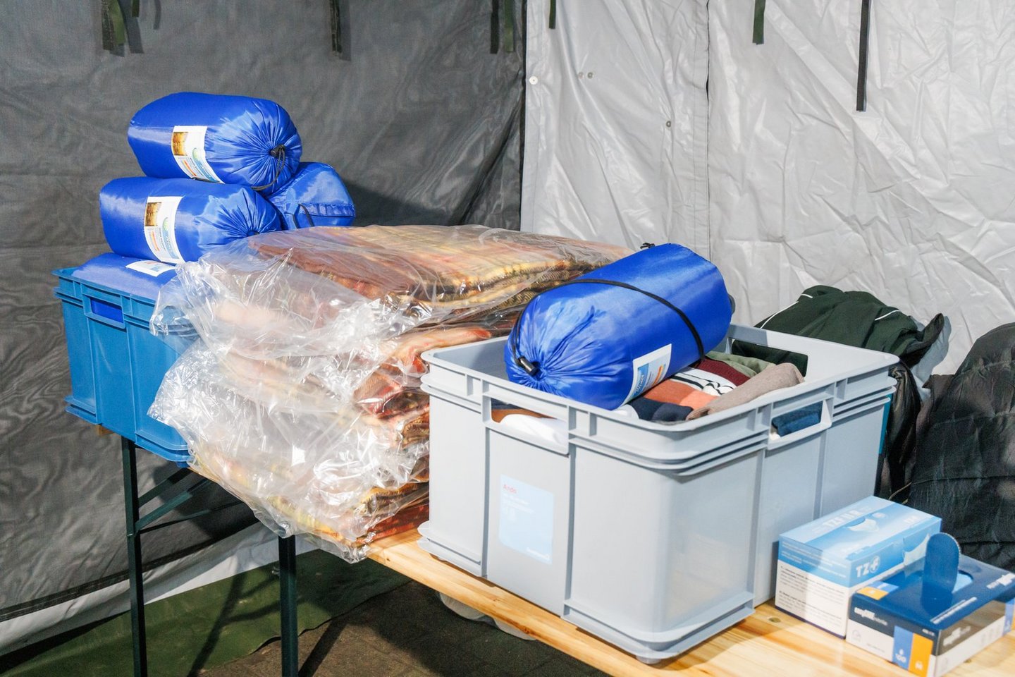 Namiot Pełen Ciepła przed główną siedzibą MOPS