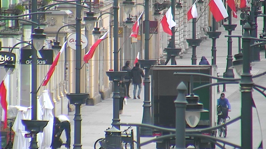 Mężczyźni szli z flagami wzdłuż ulicy Piotrkowskiej. Fot. arch. SM Łódź